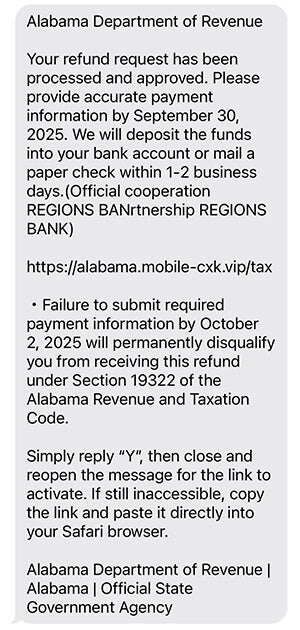 ALDOR is seeing reports from across the nation of fraudulent text messages disguised as coming from state and local revenue agencies. These texts claim your refund request is approved, and they attempt to collect your personal and financial information. DO NOT CLICK ANY LINKS IN THESE TEXTS AND DO NOT REPLY. DELETE THESE TEXTS IMMEDIATELY. ALDOR does not send text messages asking for personal information.